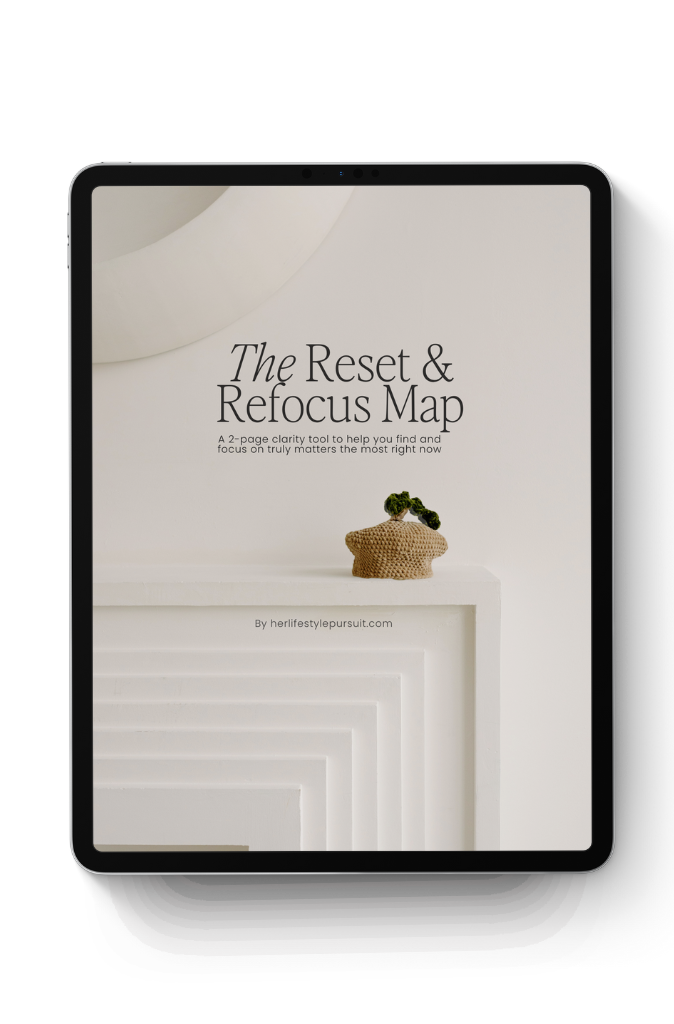 The Reset & Refocus Map helps you pause, clear the mental clutter, and realign with what truly matters. Join hundreds of women who are choosing to step into their month and day, with intention, clarity, calm, and confidence.
